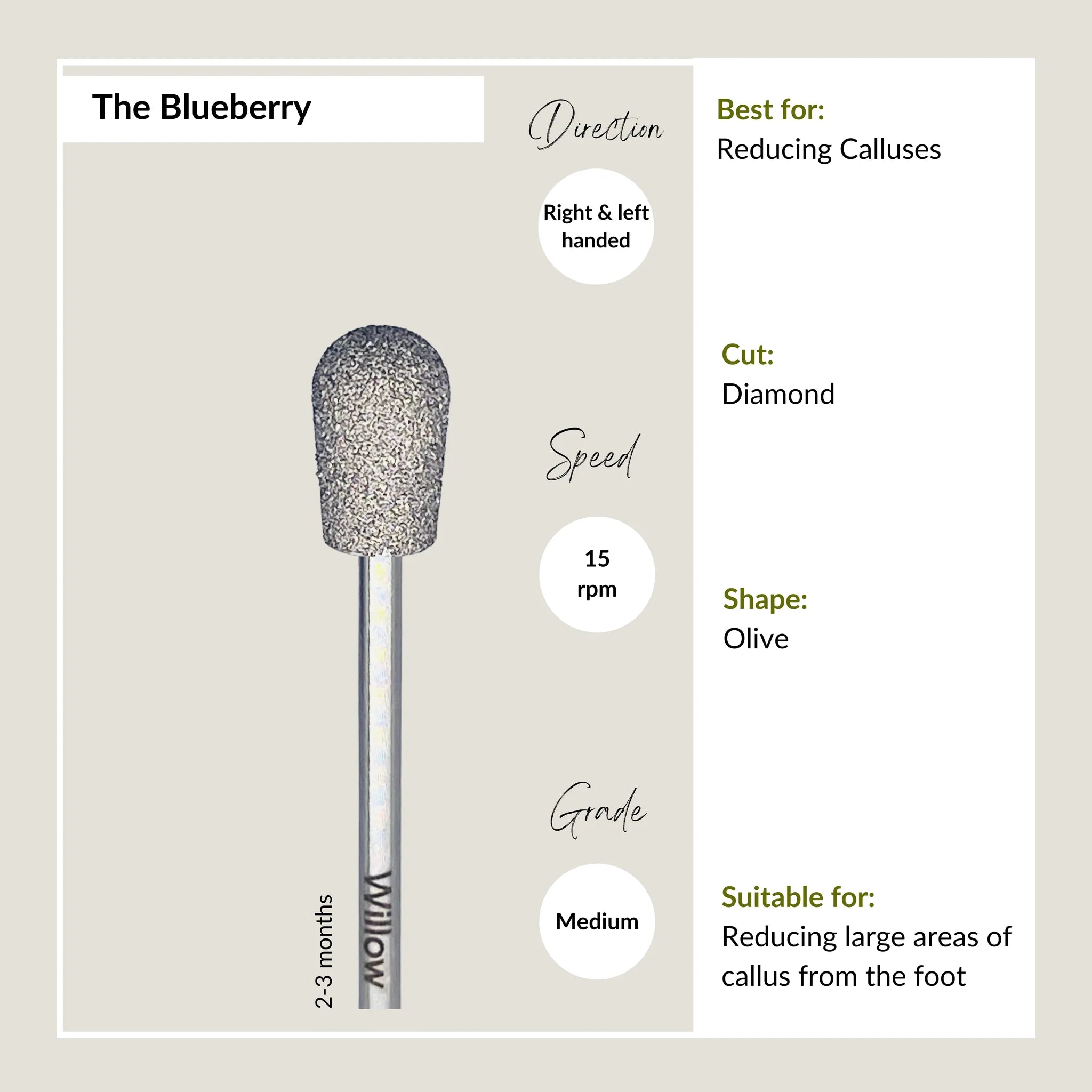 The Blueberry is the holy grail of Pedi pieces that will reduce calluses and hardened areas of the foot.